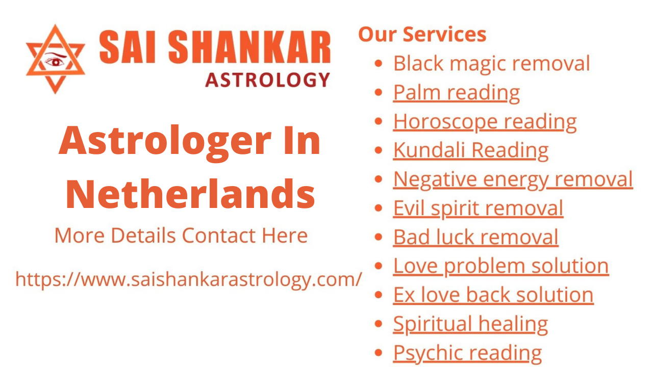 Sai Shankar astrologer is the most famous astrologer in Netherlands. Offer best Vedic online Astrology services in Netherlands, Top Spiritual healer, kundali and Palm reading, Horoscope and Psychic Reader, Black magic removal, Bad Luck Removal, Bring back ex love, Evil spirit removal, Negative energy removal, vashikaran specialist in Netherlands.